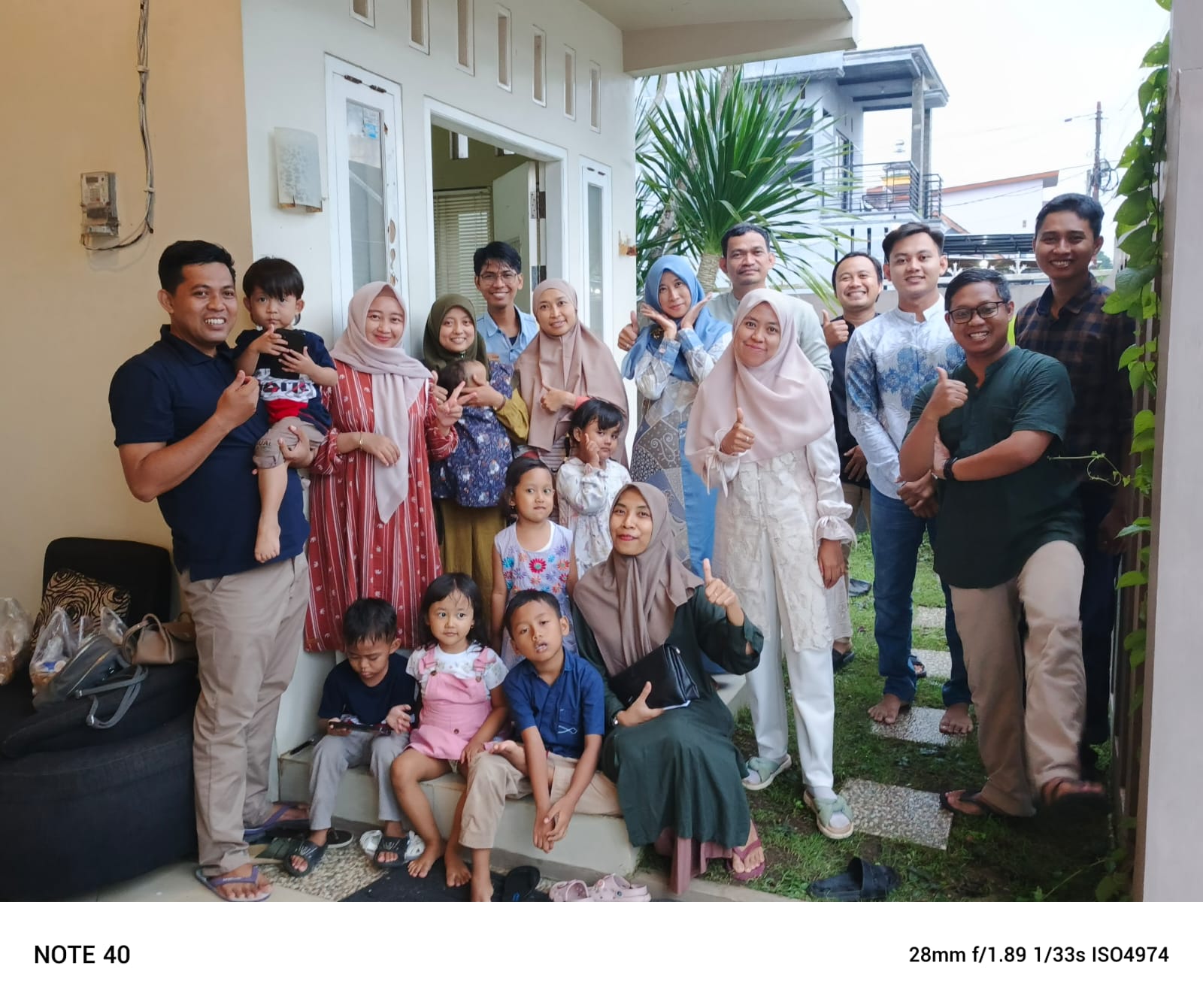 Suasana semakin hangat ketika para dosen saling berjabat tangan dan berfoto bersama, diiringi dengan hidangan khas lebaran yang disiapkan oleh tuan rumah. Momen penuh tawa dan cerita ringan itu memperkuat nuansa kekeluargaan/